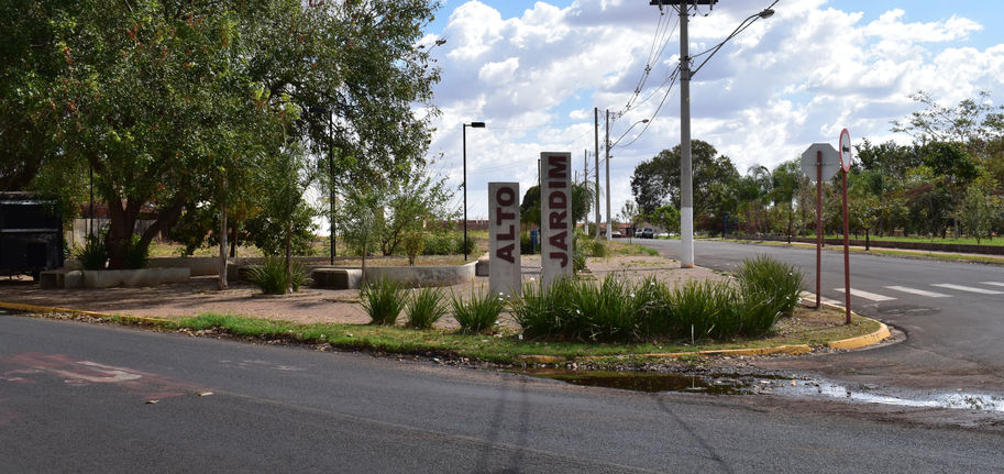 Um dos elementos mais marcantes da Praça Ybátyba é o conjunto de pilares verticais com as inscrições “ALTO” e “JARDIM”, que funcionam como um portal simbólico de entrada no bairro. A presença de ruas bem sinalizadas, cruzamentos seguros e boa acessibilidade complementa a experiência de quem visita ou transita pela região.